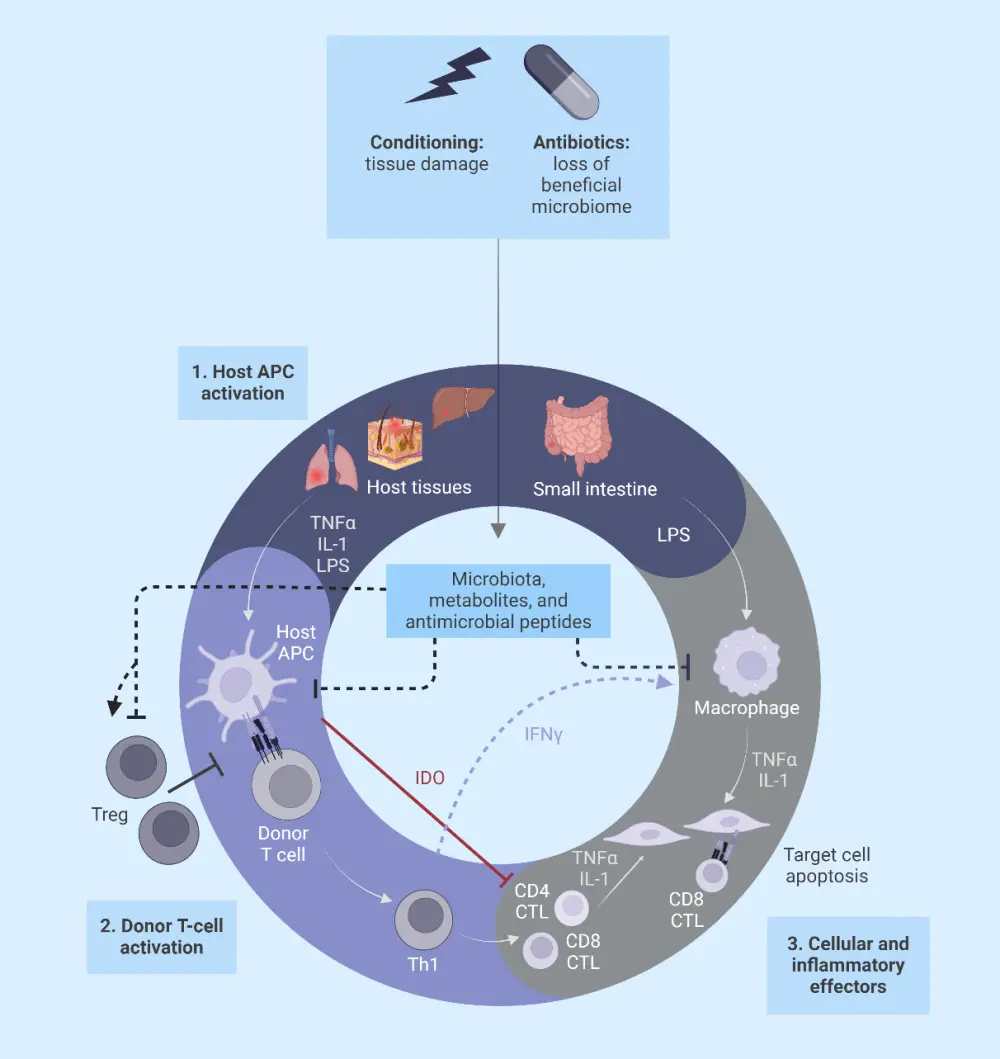 The pathophysiology of GvHD is divided into three phases (Figure 2):