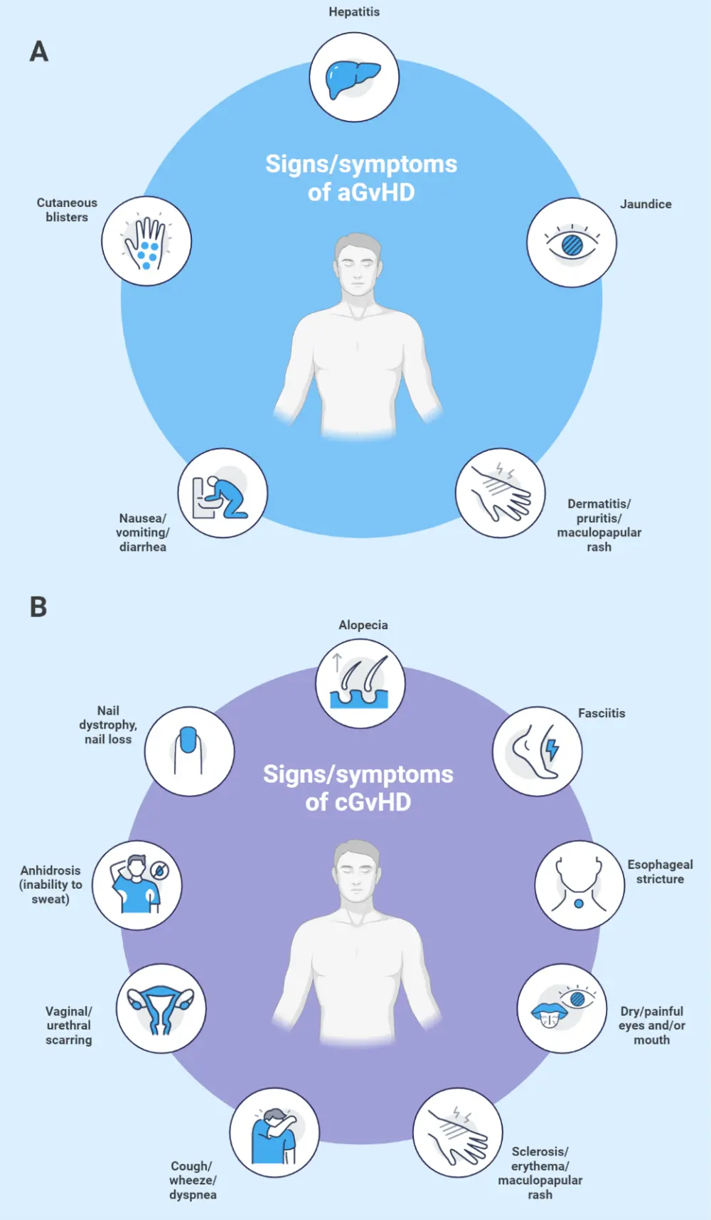 Figure 3. Signs and symptoms of A aGvHD and B cGvHD*