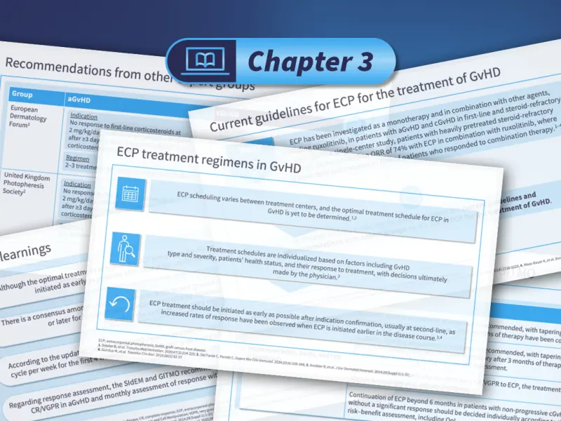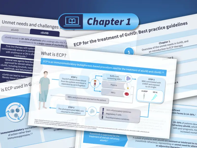 In the first chapter of this e-learning module, we describe the current unmet needs and challenges in acute and chronic graft-versus-host disease (GvHD), and we introduce the mechanism of action of extracorporeal photopheresis (ECP) and the rationale for its use in the treatment of GvHD.