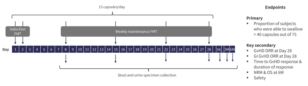 The study met its primary endpoint, with nine patients completing all eligible doses. One death was reported prior to completing the treatment due to progressive GvHD, with no treatment-related significant adverse events observed. In the first 28 days after FMT, 2 cases of bacteremia (Methicillin-resistant Staphylococcus aureus and Lactobacillus) were reported, both unrelated to FMT.