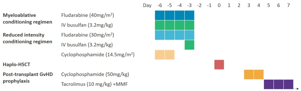 GvHD, graft-versus-host disease; Haplo-HSCT, haploidentical hematopoietic stem cell transplantation; IV, intravenous; MMF, mycophenolate mofetil.