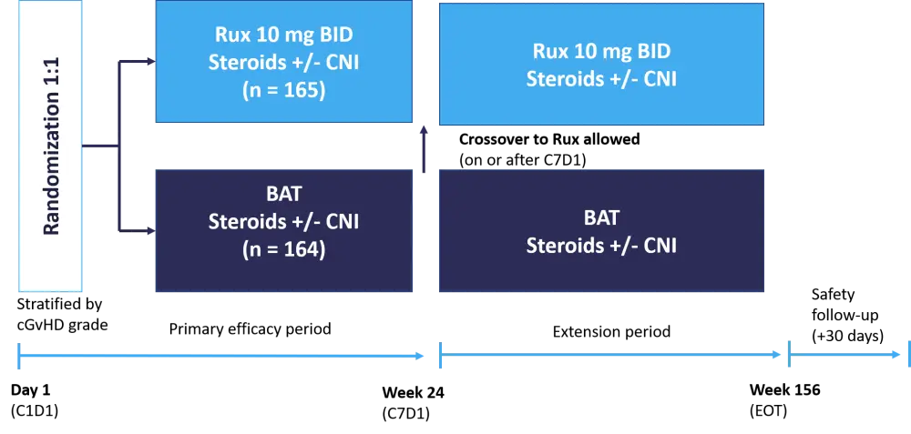 Patients were randomized to receive either ruxolitinib or their physician’s choice of BAT, as shown in Figure 1.