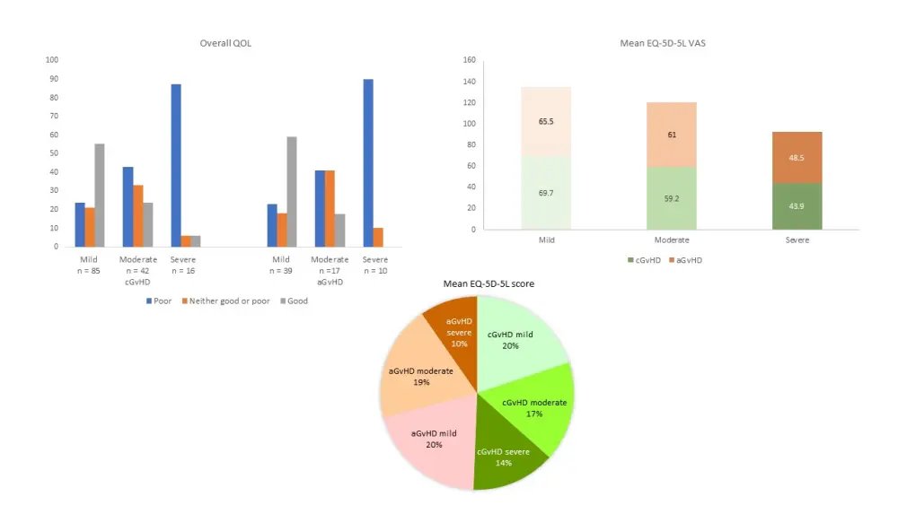 The impact of aGvHD and cGvHD severity and steroid response on the QOL of patients post allo-SCT was recently studied in real-world cross-sectional surveys, which were conducted by Hammad et al. (aGvHD) and Lachance et al. (cGvHD).1,2