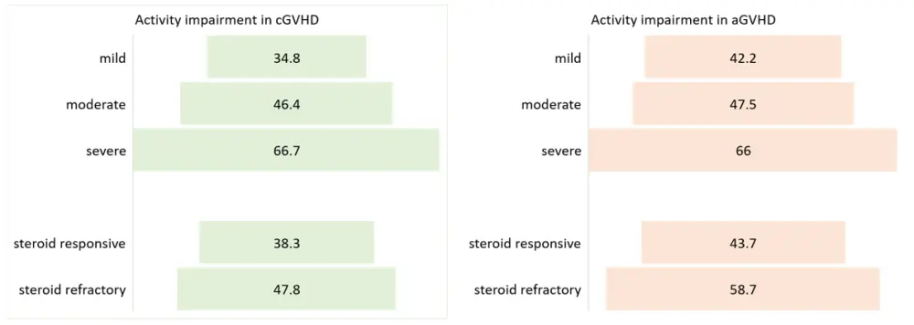 Figure 4. Activity impairment for cGvHD and aGvHD patients as per severity of the disease and steroid response*