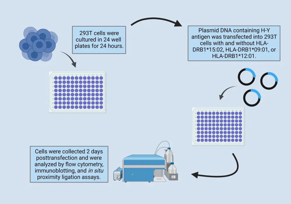 Human plasma, skin biopsy, and leukemia cell samples were obtained from the Jichi Medical University Hospital, Shimotsuke, and Jichi Medical University Saitama Medical Center, Saitama, JP. The method of H-Y antigen transfection is shown in Figure 1.