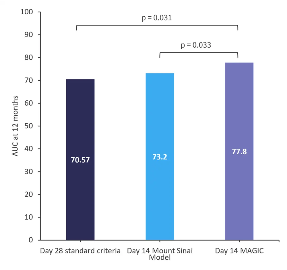 AUC, area under the curve; GvHD, graft-versus-host disease; NRM, non-relapse mortality; MAGIC, Mount Sinai Acute GvHD International Consortium.